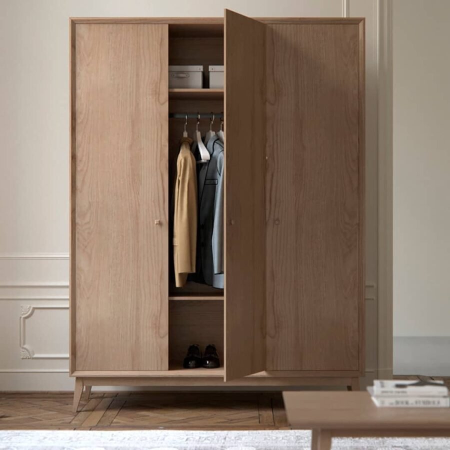 The MOON 3-door ash wood wardrobe is a contemporary piece crafted from high-quality materials, offering a refined and elegant appearance along with excellent strength and durability. Its clean design makes it a stylish and practical addition to any interior.